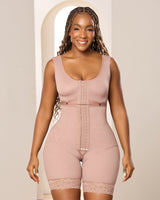 Su sistema de ajuste cuenta con tres filas de broches frontales, lo que permite una adaptación progresiva según tus necesidades, complementado con cargaderas ajustables que brindan soporte óptimo y un sostén incorporado para mayor seguridad y confort. Su diseño media pierna tiene encaje siliconado para asegurar que la prenda permanezca en su lugar sin enrollarse durante tus actividades diarias, mientras que las varillas estratégicamente ubicadas ofrecen soporte lumbar adicional para una mejor comodidad.
